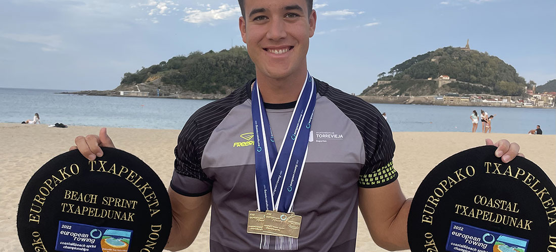 El remero torrevejense Ander Martín y su compañera aragonesa Esther Briz se proclamaron campeones de Europa de Remo de Mar en la bahía de la Concha de San Sebastián. La pareja se alzó de nuevo con el oro tanto en corta como en larga distancia en la categoría de doble mixto. Ambos han cerrado la temporada de Remo de Mar con este doble título europeo que se suma a los dos oros conseguidos recientemente en el Campeonato del Mundo en Gales.