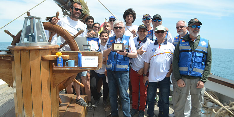 Los radioaficionados agradecen a la tripulación, especialmente al capitán, el trato recibido durante toda la travesía. El presidente del Radioclub entregó una metopa con la fecha del evento al capitán, que a su vez obsequió a éste con la metopa de barco.
