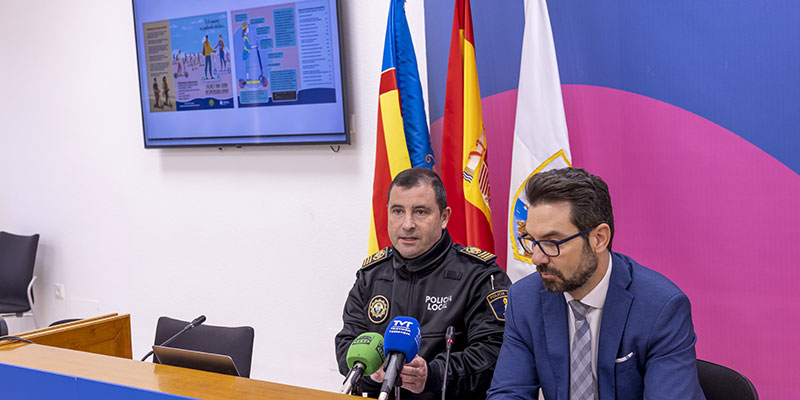 El concejal de Seguridad y Emergencias, Federico Alarcón, y el Intendente de la Policía Local, Óscar Cartón, han presentado la campaña de concienciación de las normas de circulación que se aplican a los vehículos de movilidad personal (VMP).
