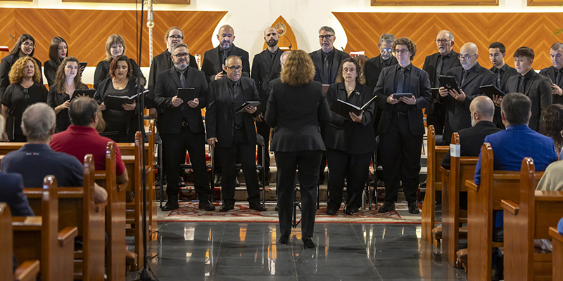 El coro comenzó su actuación en el pasillo central mirando al público asistente y seguidamente se ubicó en los peldaños del Altar Mayor. Asistieron Aurelio Ferrándiz, párroco del Sagrado Corazón, el concejal de Cultura, Antonio Quesada, y la presidenta de Ars Aetherea, Mamen Mateo.
