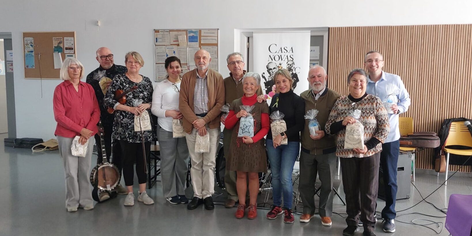 Los músicos participantes en el concierto fueron Eusebio Sánchez (guitarra), Víctor Manuel Quesada (guitarra y voz), Ita Menéndez (batería), Vicente Luengo (violín), Juan Espinosa (guitarra), Caty Hernández (voz), Nadine Ceuterick (clarinete), Sandra Cedeño (voz), Juhani Ahonen (banjo), Anne Savin (violín) y Aurora Villares (guitarra y voz), que presentaron un precioso repertorio en diferentes formaciones (solista y grupos de cámara), algo que hizo disfrutar a los usuarios, trabajadores, familiares y público que llenaron el hall principal del centro torrevejense.