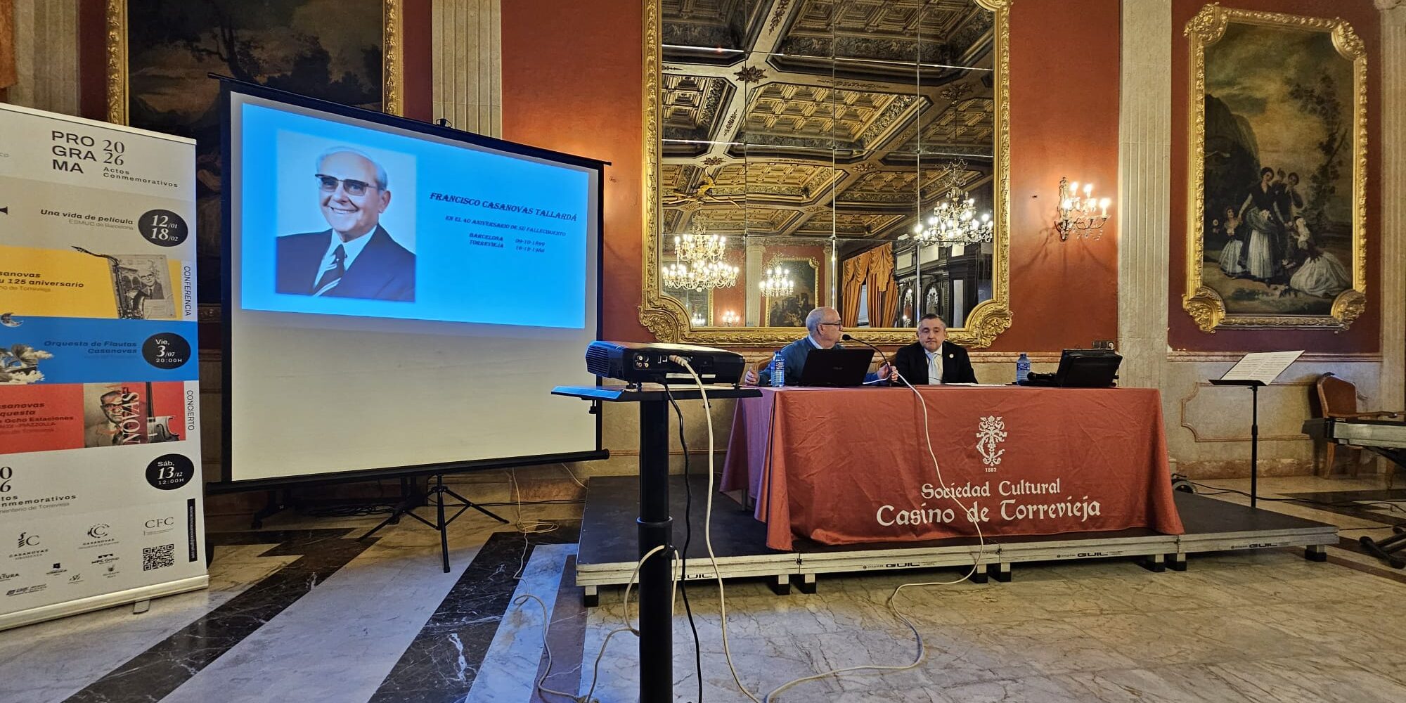 El Salón Principal de la Sociedad Cultural Casino de Torrevieja acogió en la tarde del sábado 7 de marzo la maravillosa Conferencia «Casanovas y su 125 Aniversario» a cargo del director torrevejense José Francisco Sánchez, registrando un numeroso público.