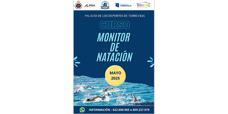 La Real Federación Española de Natación, a través de su Escuela Nacional de Entrenadores, ha convocado una nueva edición de su curso de monitor de natación como titulación propia federativa. El curso, organizado por el Club de Natación Torrevieja y en colaboración de la Concejalía de Deportes del Ayuntamiento de Torrevieja para la formación de deportistas, se llevará a cabo en el mes de mayo. La prueba de acceso será el 25 abril a las 15:30 horas. Las clases se impartirán los viernes 9, 16 y 23 de mayo de 16:00h a 20:00h., los sábados 10, 17 y 24 de mayo de 9:00h a 14:00h y 15:30h a 20:30h., y los domingos 11, 18 y 25 mayo de 9:00h a 14:00h en el Palacio de Deportes de Torrevieja. Si te gusta la natación y quieres ser entrenador, no dudes en apuntarte. Las preinscripciones están abiertas hasta el 15 de abril y se pueden realizar en el siguiente formulario: https://forms.office.com/e/kCzsQRb7Ry.
