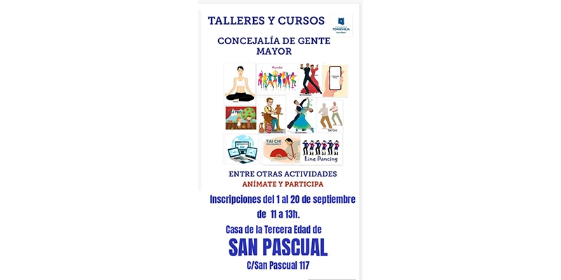 Los talleres y cursos que se ofertan y que se desarrollarán en diferentes dependencias municipales como el Centro Municipal de Ocio (CMO), la Casa de la Tercera Edad de San Pascual y el Centro Social Polivalente de La Mata, van desde Yoga, Zumba, Taichí, Taichí con Abanico, Baile en Línea, Baile de Salón, Telefonía Móvil y RRSS, Manualidades e Inglés.
