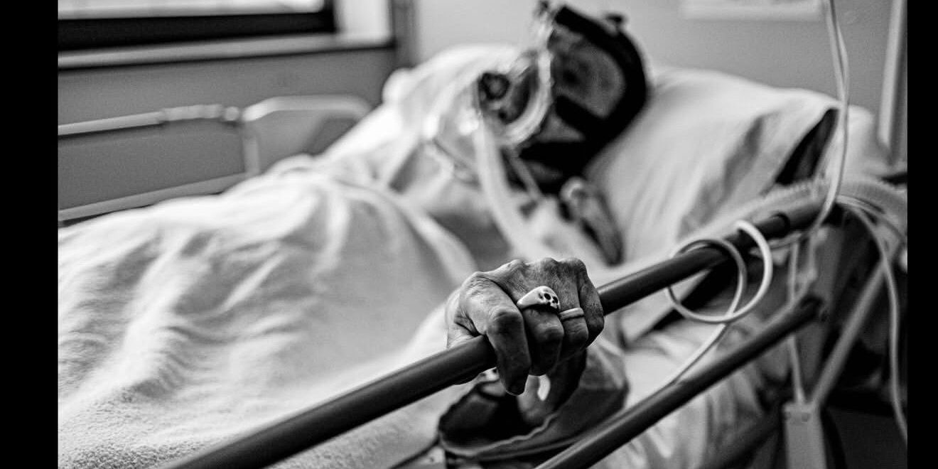 Ambas fotografías han sido nominadas en el apartado de gráfico. Una de ellas fue tomada durante la pandemia del Covid-19. “Es un paciente que estaba bastante grave. Estuve retratando todos los hospitales de España, lo viví todo desde dentro”, asegura David de Loro. “Esta fotografía me llamó la atención por la situación de cómo estaba ese hombre, quería decirme algo y yo no lo entendía. Me resultó muy llamativo el anillo de la calavera”.