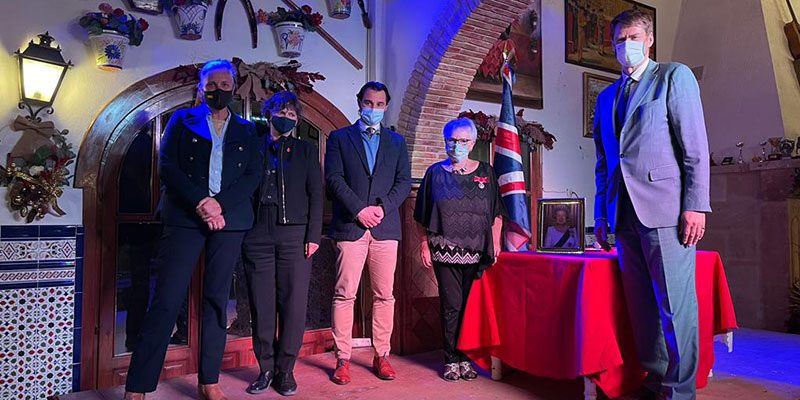 El alcalde de Torrevieja, Eduardo Dolón, y la concejal de Relaciones Internacionales, Gitte Lund, asistieron el pasado 9 de diciembre a la entrega de la Medalla del Imperio Británico a Maureen Payne, presidenta de la asociación Age Concern Costa Blanca Sur, por parte del embajador británico en España, Hugh Elliot, que estuvo acompañado por la cónsul en Alicante, Sarah Jane Morris.