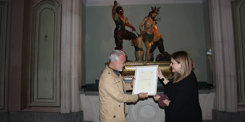 El imaginero Víctor García recibe en el Museo Salzillo el premio «Opinión del experto» del portal web «La Hornacina» por su Cristo de la Paciencia de Alhama de Murcia
