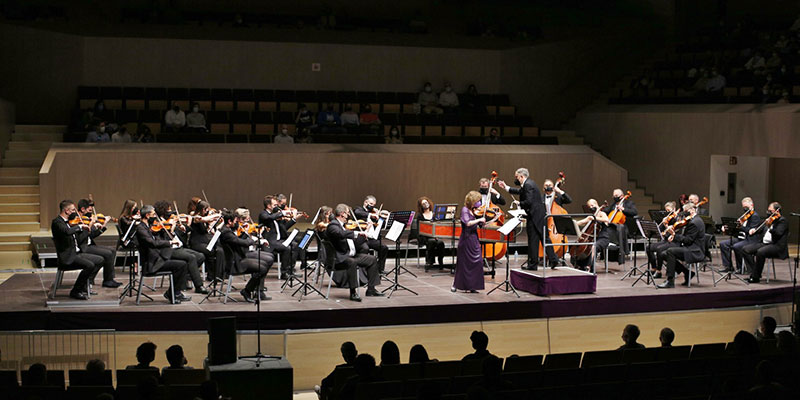 Es justo mencionar que Elena Denisova contó con la complicidad absoluta de las cuerdas de la OST bajo la dirección del maestro José Francisco Sánchez, quien demostró sensibilidad, controlando en todo momento la dinámica del conjunto, para así conceder el máximo protagonismo sonoro de la solista, permitiendo, a la vez, disfrutar de la ejecución y de la música en sí misma. Mención especial merece el fascinante sólo de la cellista Alicia Avilés en el “Otoño” de Piazzolla. El público emocionado obligó a los ejecutantes a regalar una propina. Cómo el agradecimiento Elena Denisova y la Orquesta con el maestro José Francisco Sánchez ofrecieron una preciosa interpretación de “Oblivion” de Astor Piazzolla.
