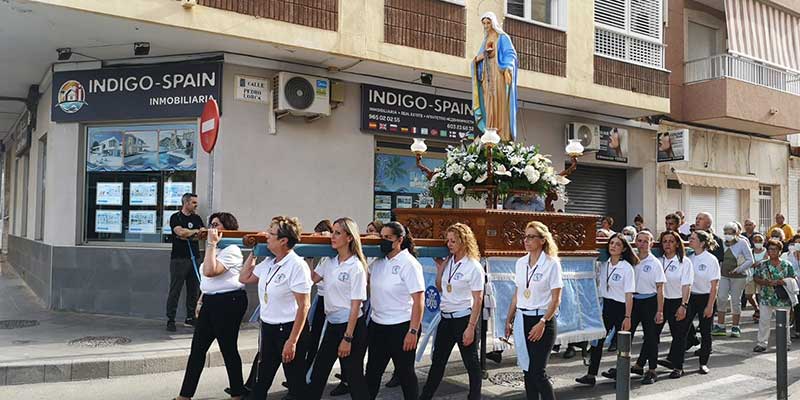 Durante el recorrido fueron rezándose los Misterios Gloriosos del Santo Rosario por el párroco, Aurelio Ferrándiz, contando con la presencia de la concejal de Participación Ciudadana, Inmaculada Montesinos.