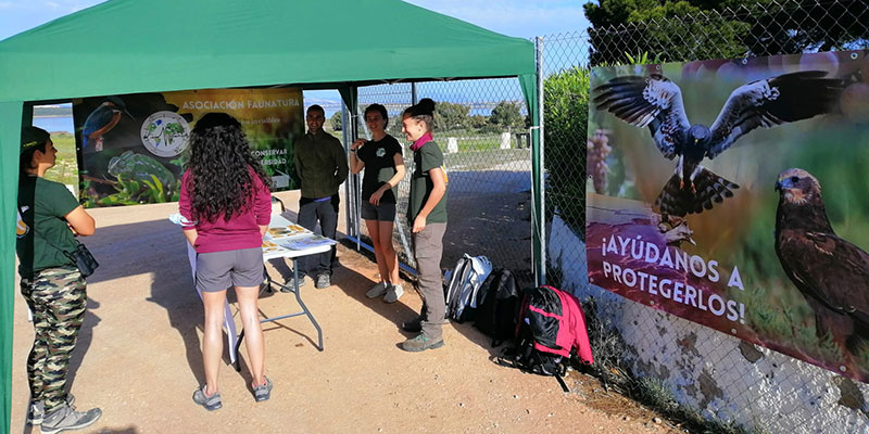 La Asociación FauNatura está llevando a cabo una campaña de información y sensibilización del proyecto ‘Volando entre salinas y viñedos’. La entidad, con la ayuda de los voluntarios, viene informando todos los domingos a los visitantes del Parque Natural de las Lagunas de La Mata y Torrevieja acerca de la biología y problemas de conservación que sufren el aguilucho cenizo (Circus pygargus) y el aguilucho lagunero occidental (Circus aeruginosus), además de cómo proteger a ambas especies. Los visitantes también pudieron utilizar los prismáticos y telescopios para observar las aves de la laguna.