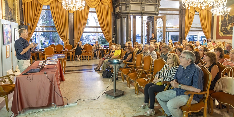 Numerosos representantes del tejido cultural y social de la ciudad se dieron cita en el salón principal del Casino para asistir a la presentación del libro «Campo alegre de batalla. Antología comentada de la Generación poética del 27», de Jesucristo Riquelme, coordinador del Aula UNED de Torrevieja y académico de honor de la Academia Internacional de Ciencias, Tecnología, Educación y Humanidades (AICTEH).