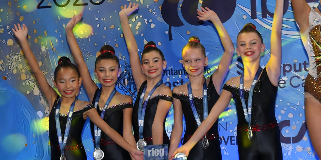 En modalidad de conjuntos, nuestras Benjamines Anastasiia Radchenko, Darina Agafonova, Isabel Gavrilova, Adriana Torres y Ava Murphy lograron ser subcampeonas de su categoría.
