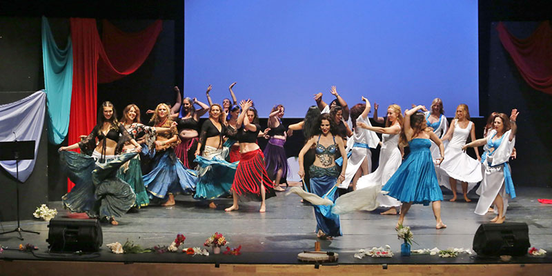 Una veintena de alumnas de los niveles intermedio y avanzado ofrecieron un espectáculo de danzas del Mediterráneo oriental lleno de matices, con diferentes subgéneros dentro del género de la danza oriental, desde la danza clásica a la más moderna, pasando por el romanticismo y la fusión.