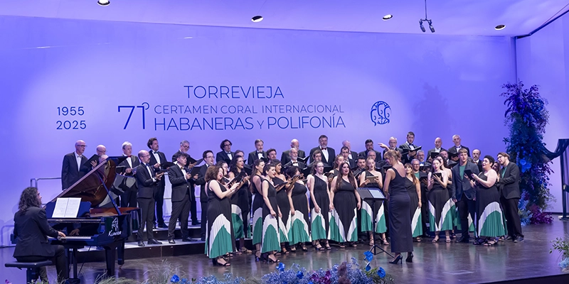 El Certamen Internacional de Habaneras y Polifonía exhibía en la tercera velada de su 71ª edición una de esas noches que será recordada durante muchísimo tiempo por la brillante conjunción sobre el escenario del Teatro Municipal de lo mejor de la cantera de la música coral torrevejense, el coro Sinfonía de la Escuela Coral Municipal, y el laureado ‘Voces Graves’ de Madrid.