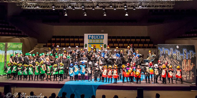 La Unión Musical Torrevejense (UMT) transportó al público a ‘Band Land’, un país imaginario donde habitan los instrumentos, en su tradicional concierto de Navidad, que este año tuvo lugar en el Auditorio Internacional de Torrevieja. La banda, bajo la batuta de Carlos Ramón Pérez, desgranó en la primera parte obras de Derek Bourgeois, Holst y Santiago Quinto. Tras un breve descanso, en la segunda parte ofreció piezas de Leroy Anderson y Derek Bourgeois contando con la participación de los alumnos del Jardín Musical y de 1º de Lenguaje Musical de la Escuela de la UMT.
