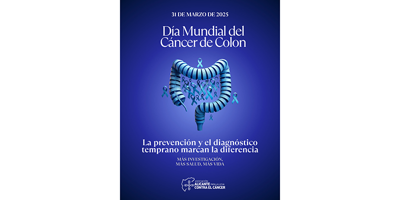 El Día Mundial del Cáncer de Colon recuerda la importancia de la detección precoz para salvar vidas. En España, el cáncer colorrectal es el tumor maligno más frecuente y la segunda causa de mortalidad por cáncer. La prueba de sangre oculta en heces es una herramienta sencilla y eficaz para la detección temprana. Participar en los programas de cribado es una decisión que puede marcar la diferencia. Sin embargo, aún queda mucho camino por recorrer. Con tal motivo, la Asociación Alicante para la Lucha contra el Cáncer instalará mesas informativas el próximo lunes, 31 de marzo, en la calle Concepción (frente a Valor), en la calle Ramón Gallud (junto al Dialprix) y en el Centro Comercial Habaneras, en horario de 10:00 a 14:00 horas.