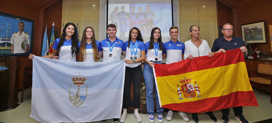 Los cuatro fueron recibidos días después en el RCNT, acompañados del equipo de remo formado por Alejandra Rumbeu, Laura Lozano y Juan Galant como timonel, que quedó segundo en la serie de cualificación y quinto en la regata de la final. Se vieron arropados por amigos, familiares, así como por miembros de la Junta Directiva con su presidente Germán Soler a la cabeza, y la concejal de Deportes, Diana Box, que les entregó las banderas de Torrevieja y España para que las lleven a los campeonatos. Soler hizo lo propio con la Grímpola del RCNT. Además, mostró su orgullo por tener “deportistas de altura”, señalando que “lo que hacéis por la entidad es de mucha importancia. Contáis con nuestro apoyo y a continuación vamos a planificar la próxima temporada”.