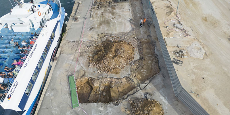 En tan solo dos días desde que se han iniciado los trabajos han aparecido las plataformas y sillares del muelle que fueron testigos de la actividad comercial de la marinería torrevejense de cabotaje a la vela.