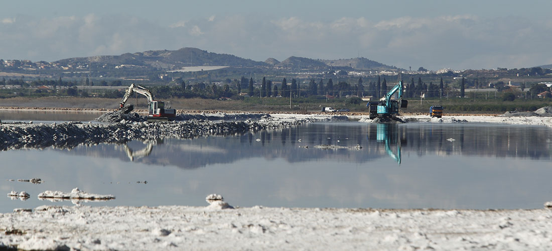 Por primera vez se está extrayendo sal de las orillas de la laguna rosa de Torrevieja. Y es que la Nueva Compañía Arrendataria de Torrevieja (NCAST) pretende ontener 40.000 toneladas extra hasta el mes de abril de 2021 de las orillas de la laguna rosa, que se destinará al mercado de deshielo de carreteras, ya que es menos pura que la que se precipita por cristalización y por acción del sol y el viento de levante en el lecho del humedal. Esta extracción extra de sal servirá para paliar la falta de producción por las lluvias torrenciales de la DANA en septiembre de 2019 y la borrasca Gloria, que también afectó a la ciudad en enero de este año. De este modo, la empresa arrendataria de las salinas pretende aumentar una producción que se ha visto mermada y que habitualmente suele superar las 500.000 toneladas, posicionando a las salinas de Torrevieja como las más importantes a nivel de toda Europa.