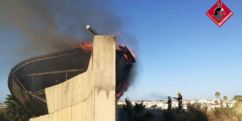 Los bomberos del Parque Vega Sur de Torrevieja intervinieron el pasado sábado, 15 de agosto, para sofocar un incendio que calcinó la cubierta -que es de madera y tela asfáltica- del balneario de lodos, dentro del Parque Natural de las Lagunas de La Mata y Torrevieja. Una dotación de diez efectivos se trasladó al lugar para extinguir las llamas, cuyo origen se desconoce, precisando para ello de varios vehículos y un camión cisterna. También acudieron varias dotaciones de la Policía local y la Guardia Civil. El edificio, diseñado por el arquitecto japonés Toyo Ito, ya estaba en estado ruinoso tras sufrir en 2012 un incendio anterior, además de vandalismo.